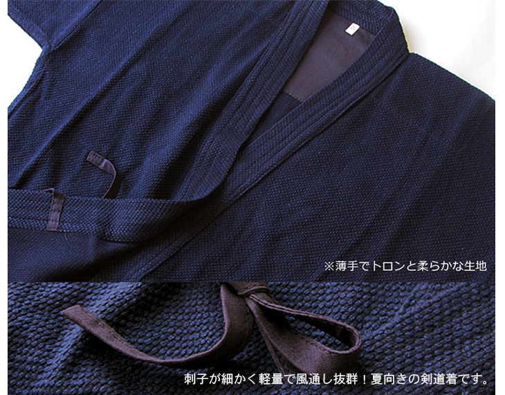 剣道衣は風通しの良い薄手の藍染刺し子生地の夏用剣道衣です。